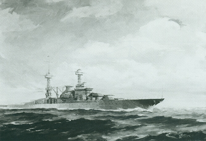 The ship was designed to carry an armament of twelve 16-inch guns, three in each of four turrets, sixteen 6-inch guns, eight on each side of the ship, and to reach a speed of 23 knots (26.5 mph).